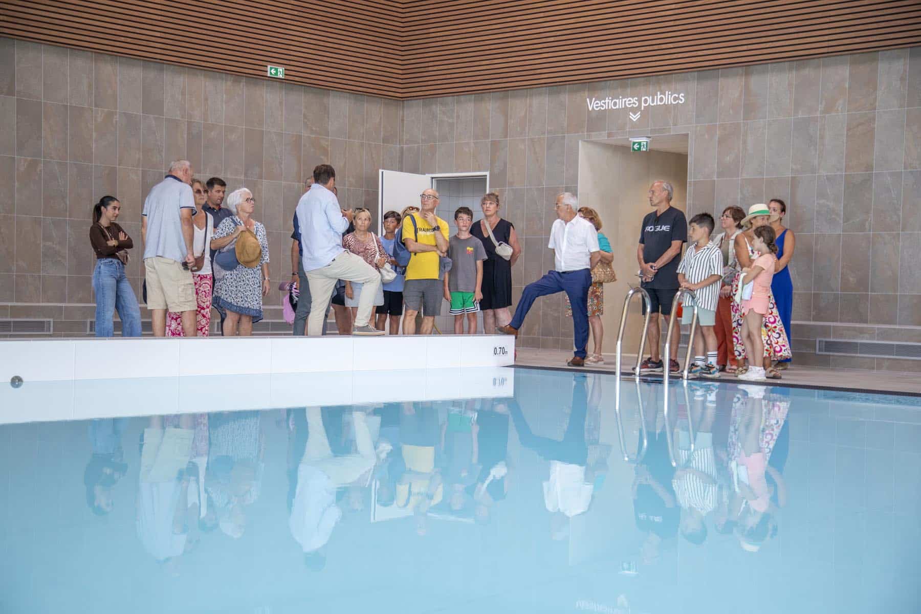 Ils ont été tirés au sort, et ils ne sont pas près d’oublier leur visite. Ce jour-là, Nicole et Michèle, retraitées (ou presque), redécouvrent le plaisir de nager… en avance. “Avec mes copines, ça fait trente ans qu’on nage tous les matins, alors forcément on était curieuses. On s’est toutes inscrites pour le tirage au sort. Et franchement, on a de la chance !”, sourit Nicole, bluffée par la charpente en bois lamellé-collé et la douceur du fond en inox blanc. Michèle, elle, apprécie “l’absence d’odeur de chlore” et la ventilation impeccable. “On va enfin respirer dans une piscine !”